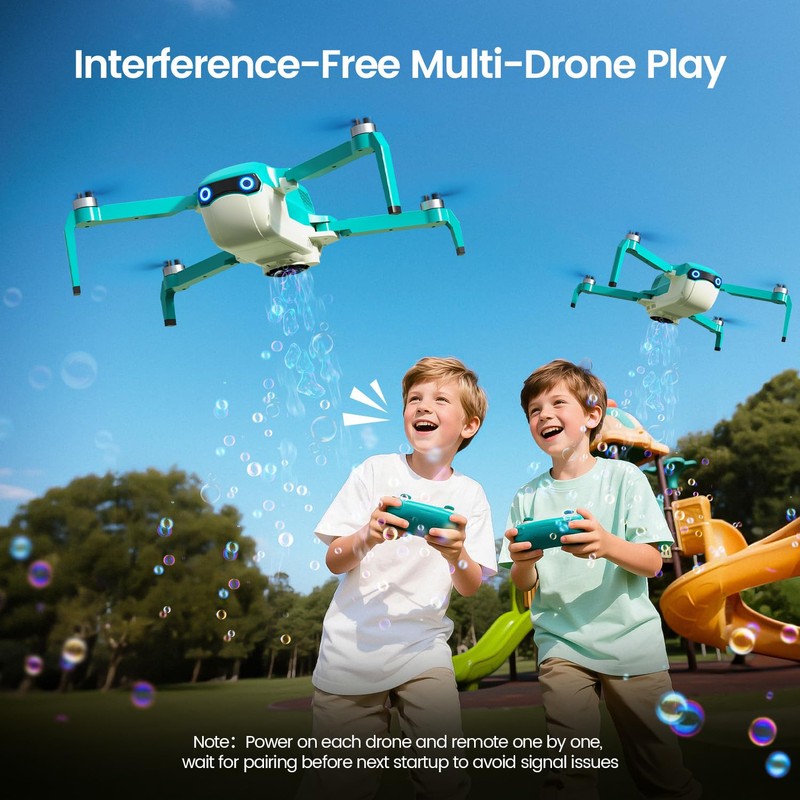 - ใ๐๐ฎ๐ฅ๐ญ๐ข-๐๐ซ๐จ๐ง๐ ๐๐ฒ๐ง๐ ๐๐ฅ๐๐ฒใWith same-frequency anti-interference tech, multiple drones fly simultaneously without interference. Power on each drone and remote one by one, wait for pairing before next startup to avoid signal issues.