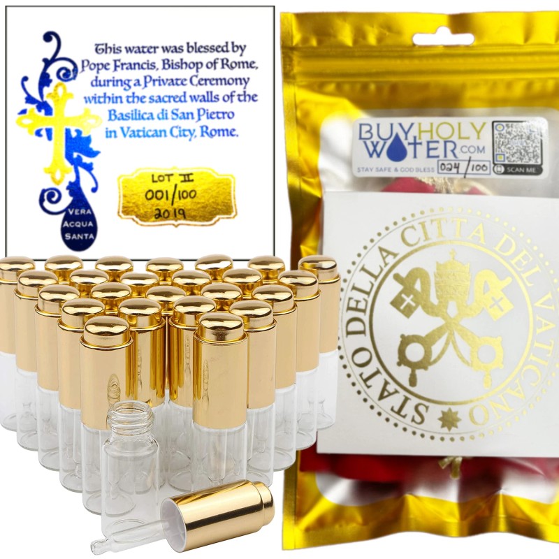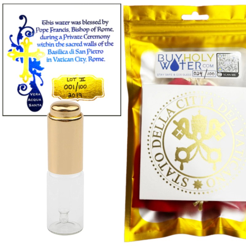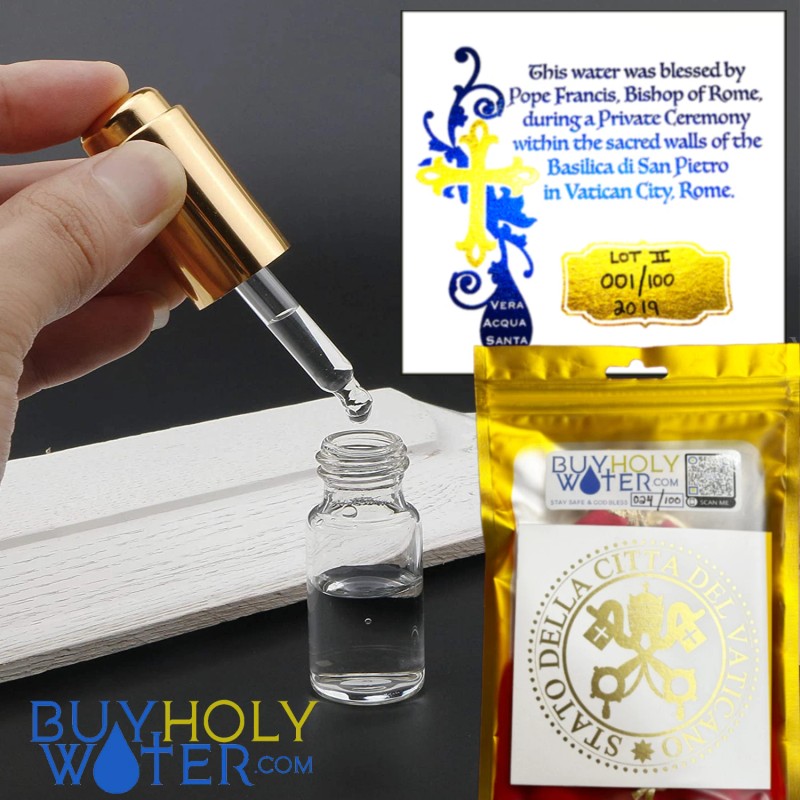 - ✞ Authentic & Pure Holy Water Blessed by Pope Francis, Bishop of Rome in Vatican City. Every Lot is Limited Production and includes a Certificate that's Hand Numbered to 100! Thousands of Vials Donated!