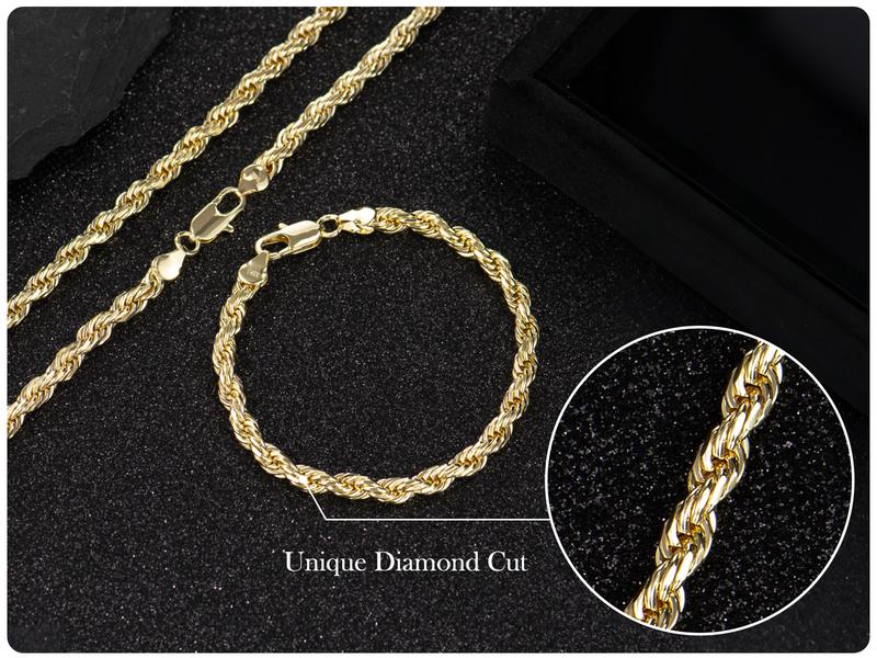 Holylegend 14K Real Gold-Plated Rope Chain for Men and Women – Upgraded Craft, Faceted Cut, Tarnish-Free, 24", 6mm/8mm - Option: Rope Set, Width: 6 mm
