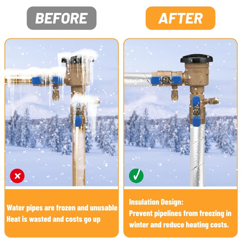 - Ideal for Winterizing Outdoor Plumbing: The pipe insulation wrap features a layer of aluminum foil on the surface, which enhances the flame-retardant properties of the wrap. The foam pipe insulation wrap is made of 0.2-inch thick rubber plastic cotton, offering strong insulation for the pipeline, improved antifreeze effectiveness, and an extended service life for the pipeline.
