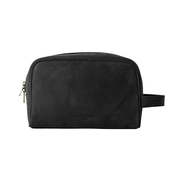 HOLZRICHTER Berlin Toiletry Bag (L) - Large Premium Leather Toiletry Bag, black anthracite