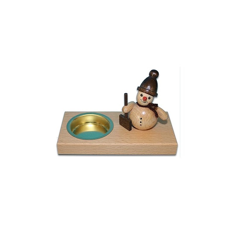 Holzwaren Egermann Candlestick Tea Light Holder with Cute Snowmen – Natural Colours – Motif: with Snow Shovel – Approx. 11.5 cm – Made in Germany