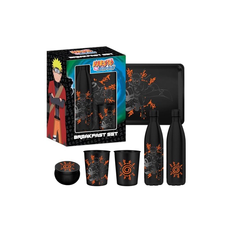 HÔMADICT CLD Distribution S.A. Naruto Shippûden - Coffret Cadeau (Sceau Kyubi): Bouteille d'eau en métal isotherme 500 ml, verre et dessous de verre