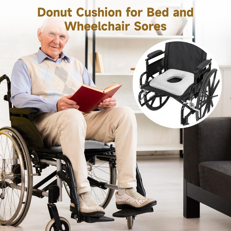 Homaisson Large Donut Cushion for Bed Sores, Wheelchair Seat Pad, Pressure Relief Cushion with Hole for Elderly Disabled Paralyzed, Stretch Cotton, Breathable Ice Silk Fabric, Removable Zipper Cover
