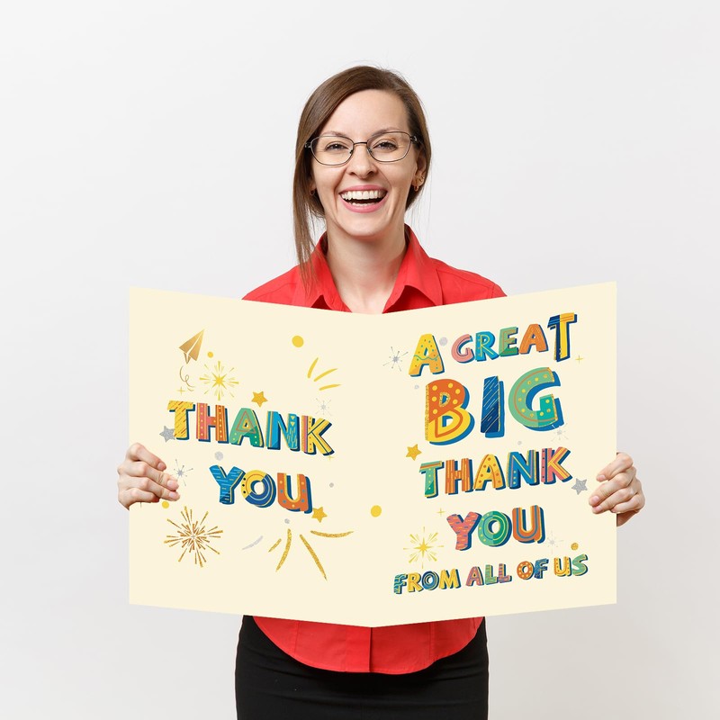 - 【Unique Keepsake】: Our jumbo thank you card is larger than the regular card, so there is plenty of room inside for your best wishes, fun thoughts and images. Write down something fun to remember those happy times and make this card a unique keepsake for that person.