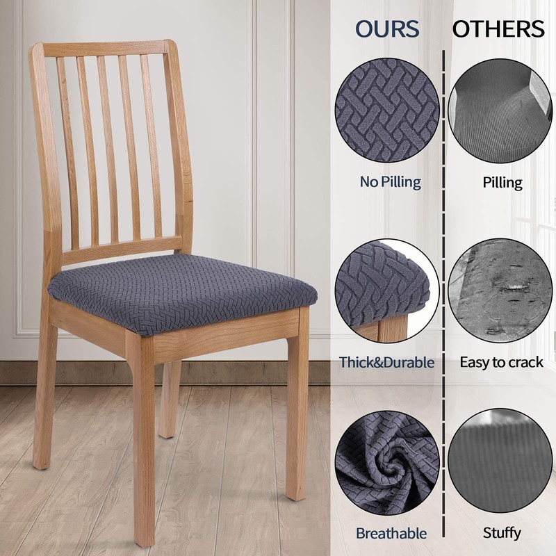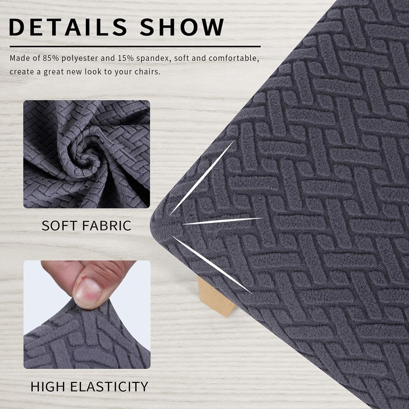 - Fashionable chair protector: seat covers for dining chairs are equipped with a stylish jacquard pattern with long checks that gives your old, damaged or ugly chair a new look and protects your chairs from daily tears, spills and accidents, especially if you have children and pets.