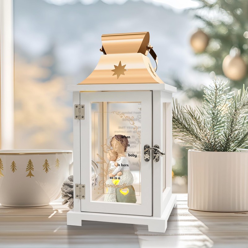 The lantern artistically captures the serene and loving moment between a grandmother and her grandchild, making it a perfect gift for grandmothers, New Grandma