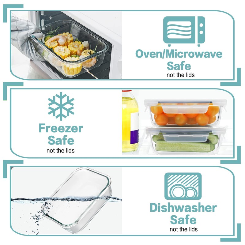 - [OVEN,MICROWAVE(Not the lids),DISHWASHER SAFE /FREEZER SAFE] These containers are oven safe below 752℉, you can use them for freezer storage,microwave(not the lids)and dishwasher, easy to use and easy to clean. It's safe to wash the lids in the dishwasher, but high temperatures over a long period of time can deform the silicone sealing strip at the edge of the lid, please wash the lids by hand as much as possible