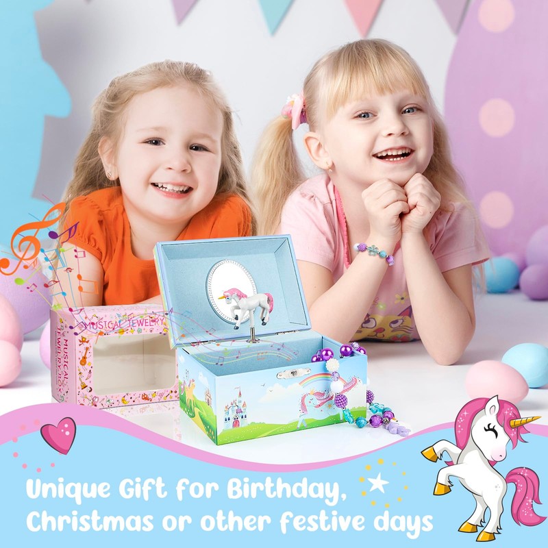 - Large capacity music box: our box is 17.8 x 11.5 x 9.9 cm (L x W x H). It includes a built-in mirror, a beautiful set of bracelet and necklace. There is enough space for your girl to organise her precious jewellery well. Can also help her clean up her own belongings from a young age.