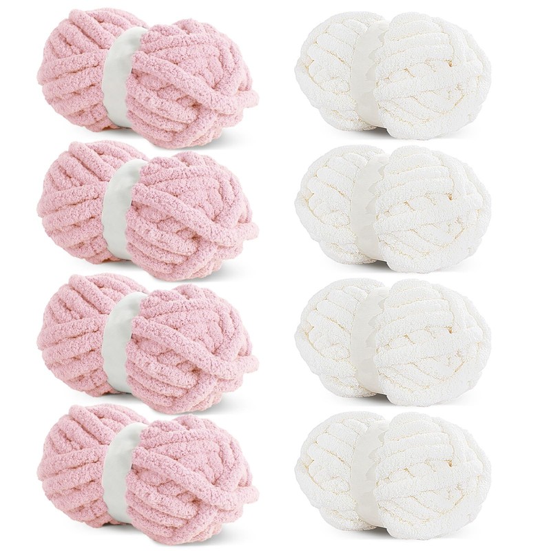 HOMBYS 8 Pack Assorted Chunky Yarn for Crocheting,Super Bulky Large Soft Fluffy Yarn,Plush Fuzzy Yarn,Thick Chenille Yarn for Hand Knitting/Arm Knitting,4 Cream & 4 Pink(27yds,8 oz Each Skein)