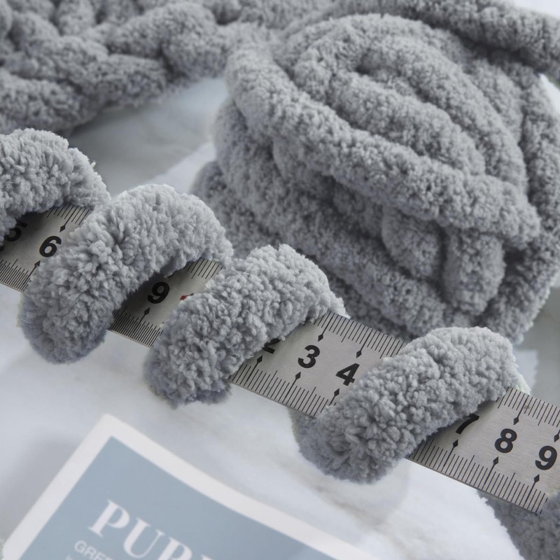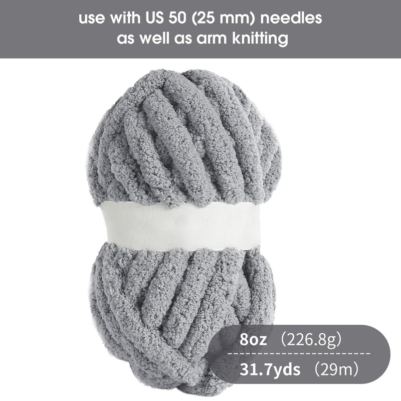 - 【Jumbo Yarn for Crocheting】 Each skein weighs 8 oz/ 226.8 g and the length is 27 yds / 25 m. The diameter of this Chenille Chunky Yarn is approximately 3/4". Knitting Gauge: US 50 (25mm), 2.5 sts - 2.5 rows = 4” (10cm) Crochet Gauge: US 50 (25mm), 2.5 sc - 2.5 rows = 4” (10cm)