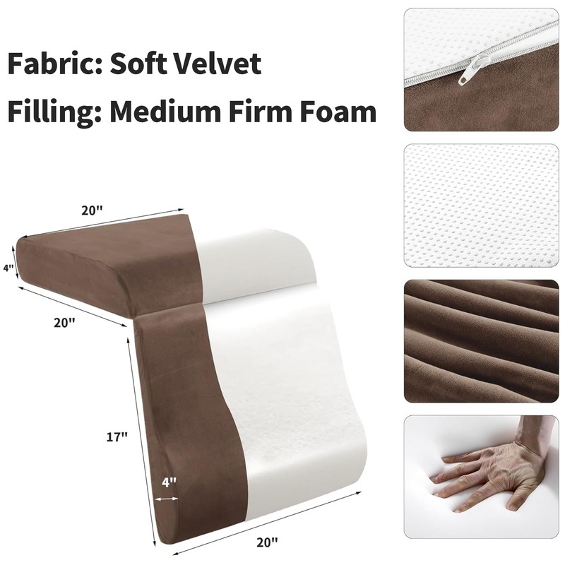 - Cushion size are 20x20x5 inches, leg pillow size are 20x17x4 inches. Velver fabric, Foam filling.