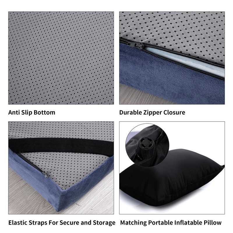 - 【Matching Pillow & Easy Carry】Comes with a self-inflating pillow that turns into a fluffy pillow as soon as you open the lid and let the air flow in. Size 72 "x24 "x3",weight 10.5lbs,easy to fold. Lightweight and easy to carry, space-saving, perfect for any outdoor activities, such as family travel or car camping.