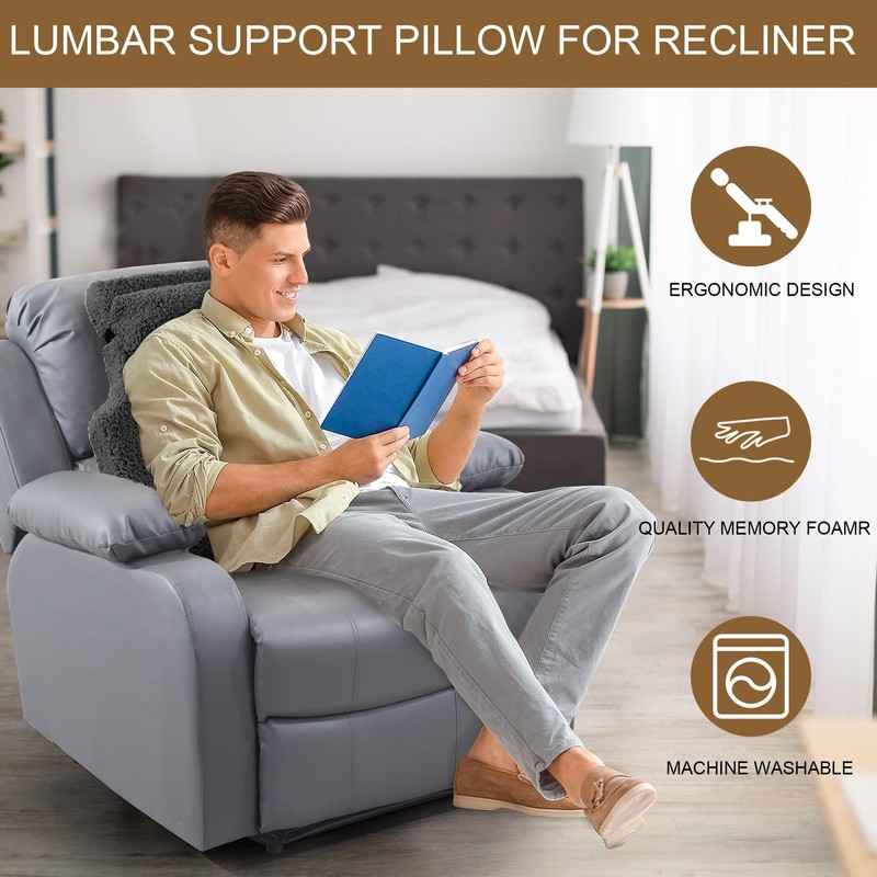 - 【Premium Memory Foam】The inner core of the lumbar support pillow is made of premium memory foam,lumbar support pillow for recliner chair has increased height to support your back.It's perfectly fit the natural curve of your back, providing additional support for the spine. Ergonomically designed lumbar pillow will effectively relieve back pain and improve your sitting posture.