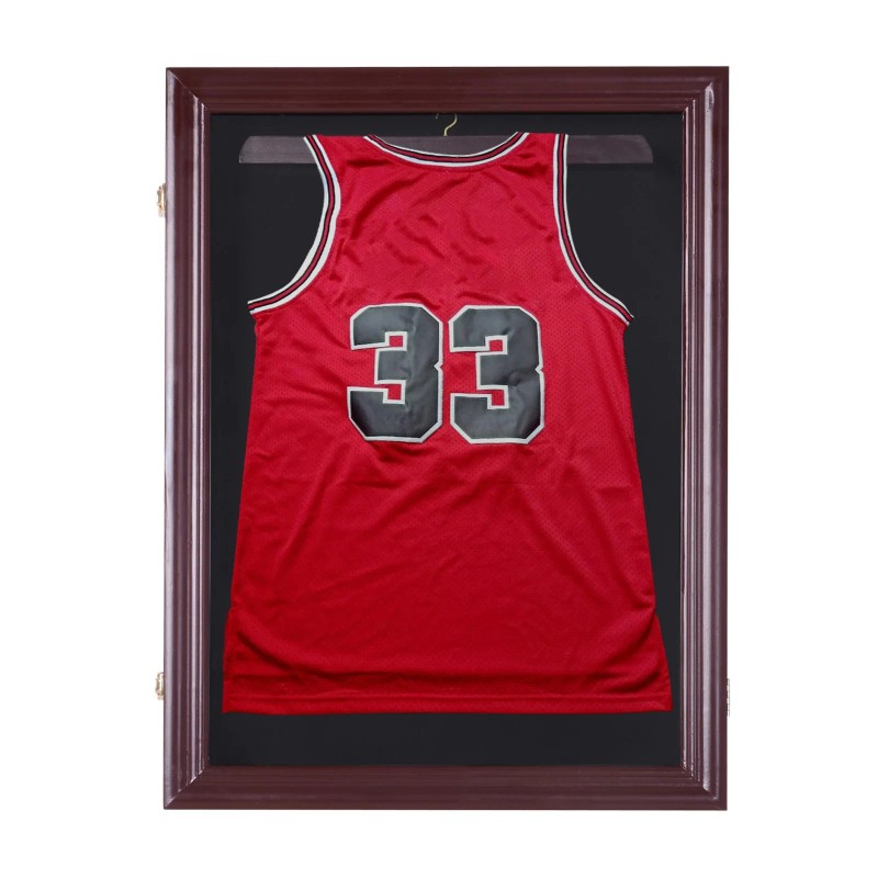 The HomCom Jersey Frame Display Case is an ideal choice for storing and displaying your prized sports memorabilia. The sturdy and solid hardwood design presents an overall elegant and attractive appearance. It features an acrylic door with two built-in magnets and a lockable latch to help keep dust away and protect against harmful UV rays. It features a hanger on the inside as well as brass hooks on the back making it quick and easy to display your favorite sports memorabilia right from the start.