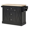 HOMCOM Farmhouse Mobile Kitchen Island Utility Cart on Wheels with Barn Door Style Cabinets, Drawers - Black