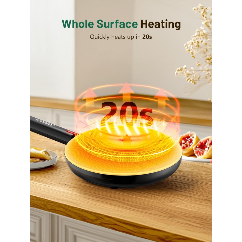 - Quick & Even Heating: Experience the efficiency of our crepe maker with its ability to heat evenly & quickly, delivering consistently delectable 8inch crepes in no time, allowing you to enjoy warm treats without the wait.