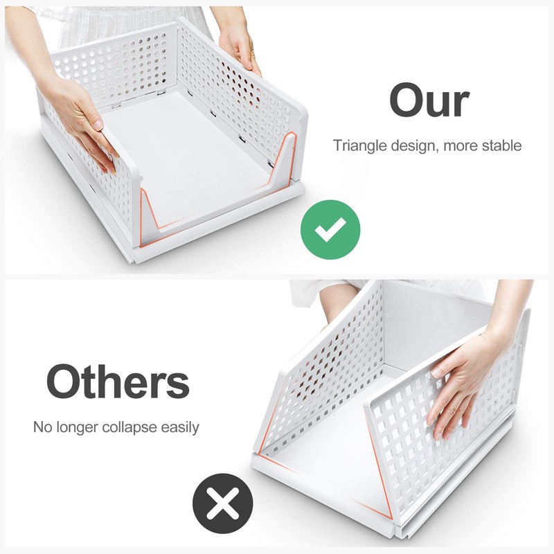 - Unique Sliding Rail & Foldable Design:The bottom of the closet storage bin basket adopts a sliding rail design, like a drawer, which is convenient for you to push and pull. The foldable design saves a lot of space and is convenient for storage when you don't need it.the position of each panel has been fixed, you only need to lift each panel and snap it into place. The Installation of closet bin can be completed in one minute