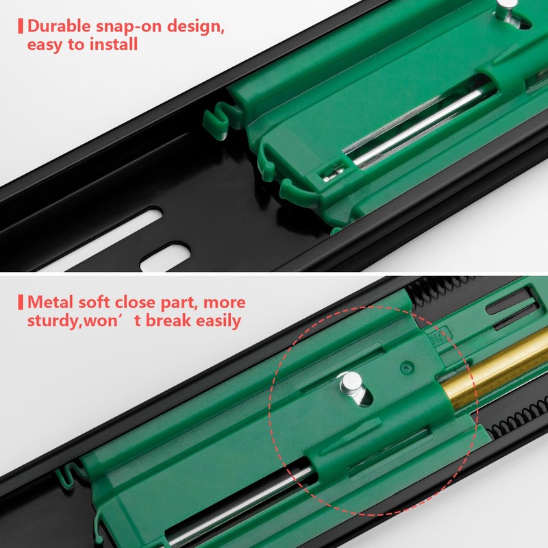 - Double Anti-drop Design: Homdiy soft closed drawer slide with double anti-drop protection can prevent drawers from separating from cabinets. Easy to disassemble and clean