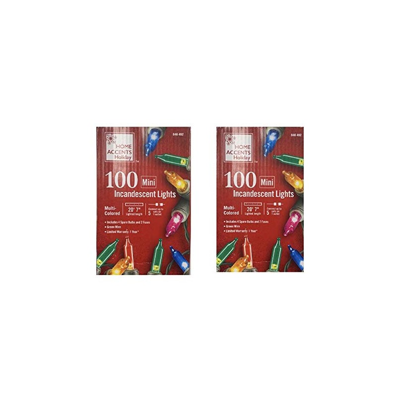 Home Accents Holiday 20 ft. 100-Lights String-to-String Incandescent Lights Mini Bulb Multi Color (2 Pack)