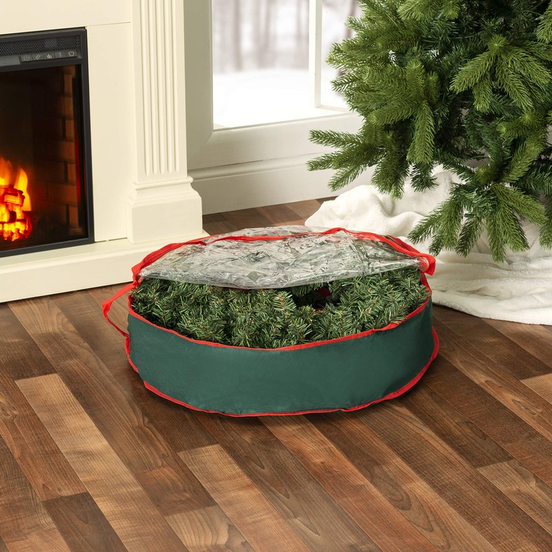 Home Basics 25" Carrying Handle Wreath Storage Bag, 25.00" W x 8.00" H, Green