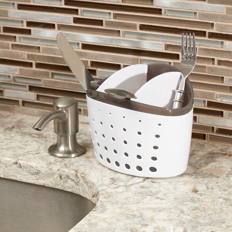 Home Basics 3 Section Perforated Plastic Cutlery Holder with Removable Insert, White