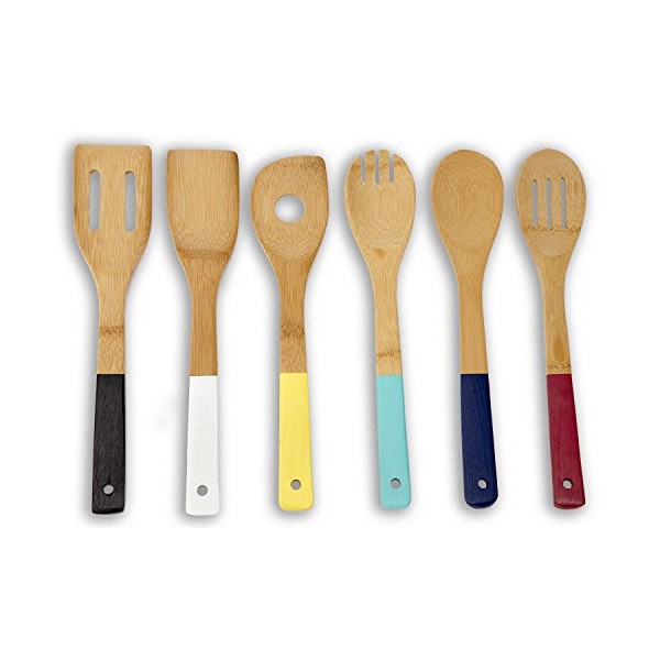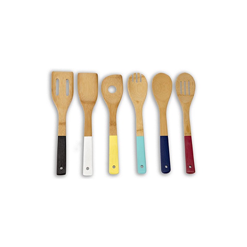 Home Basics Bamboo Cooking Utensils Set with Color Handles, 6-Piece
