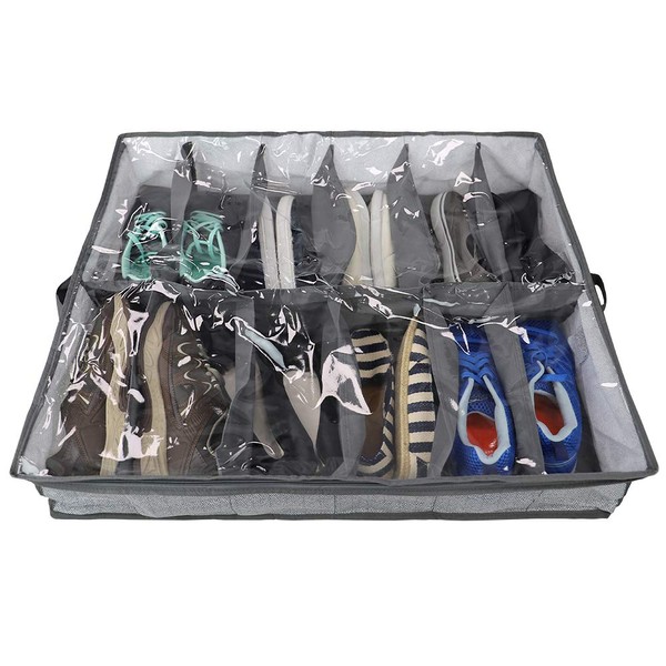 - 12 Pair shoe zipper closure organizer keeps flip, flops, sneakers, heels, and loafers protected from dust and safely tucked away