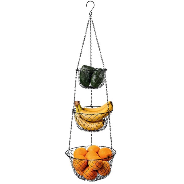 - SPACE SAVING DESIGN The 3 tier hanging basket maximizes the storage space in your kitchen. Ideal for fruit, vegetables or other household items without blocking valuable work surfaces.