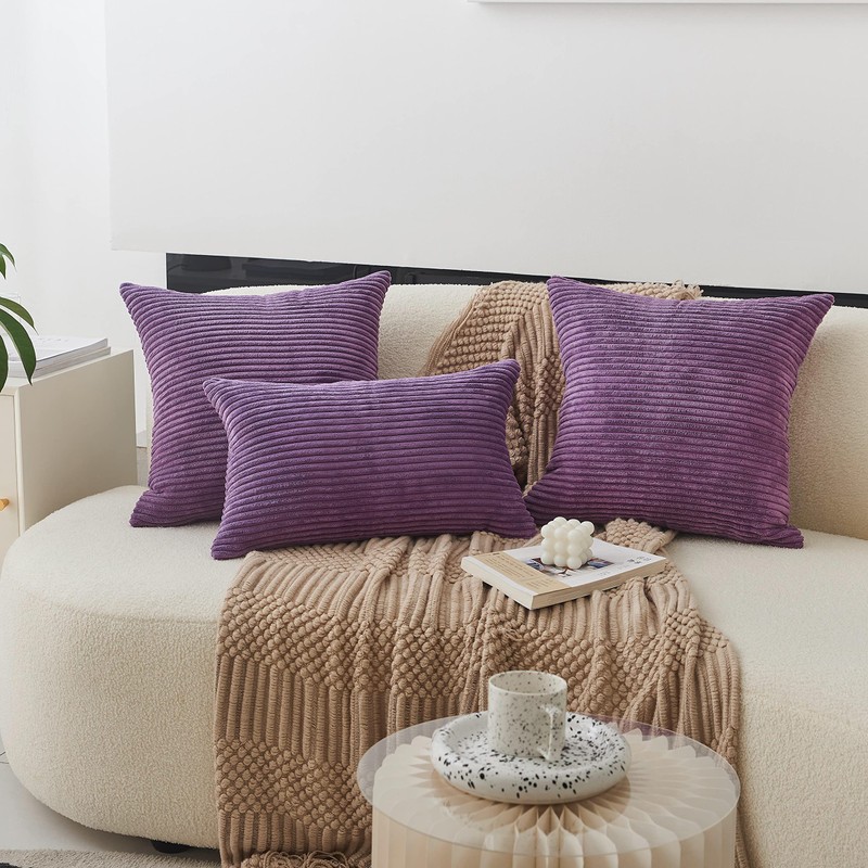 Home Brilliant Purple Cushion Covers for Sofa, Solid Cute Large Throw Pillow Cases for Bed, Striped Corduroy Cushions for Daily Use, 24 inch, Set of 2, (60 x 60 cm, Eggplant)