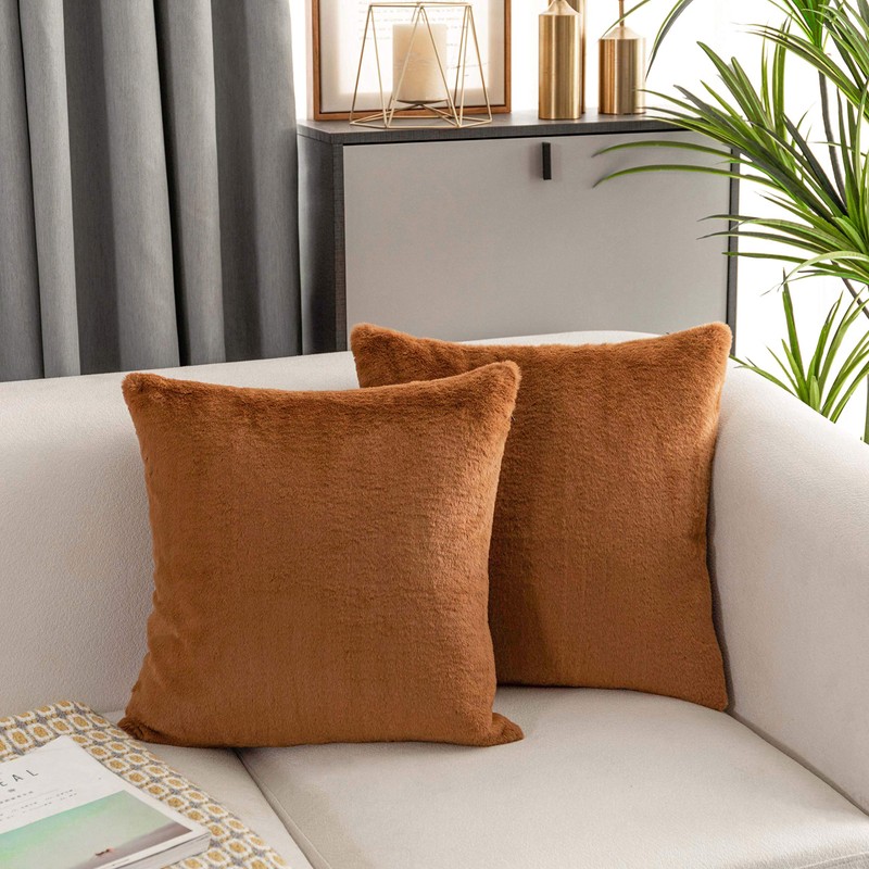 Home Brilliant Set of 2 Soft Plush Cushion Covers Bench Sofa Couch Pets Decorative Cushion Protection Faux Fur Cushion Covers 65 x 65 cm Brown