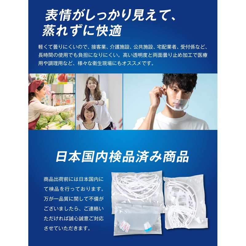 - Chin pad type that keeps your makeup from getting ruined: Compared to regular masks, it has a chin pad so it can be easily breathed and not crumble; it can be used at convenience stores, restaurants, hotel receptions, barber salons, hospitality work, and business settings. (Can be used in a wide range of fields) Lightweight and resistant to fog, so it won't be burden even when used for long periods of time, such as hospitality work, food processing, nursing facilities, public facilities, delivery contractors, and receptors. With its high transparency and anti-fog treatment on both sides, it is recommended for a variety of surfaces such as medical use, cooking, and farming
