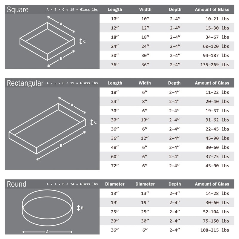 - PRODUCT DETAILS - Materials: Fire Glass. Dimensions: 10lb Container; Individual Piece: (L) 0.5” x (W) 0.5” x (H) 0.5”. Glass Must Be Completely Dry Before Use. Adhere to Fire Pit Instruction Manual. Do Not Block Burner Exhaust Holes. Color: Diamond Clear.