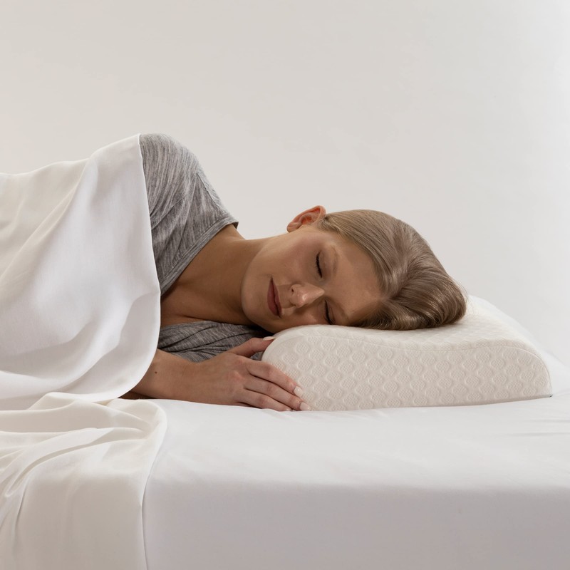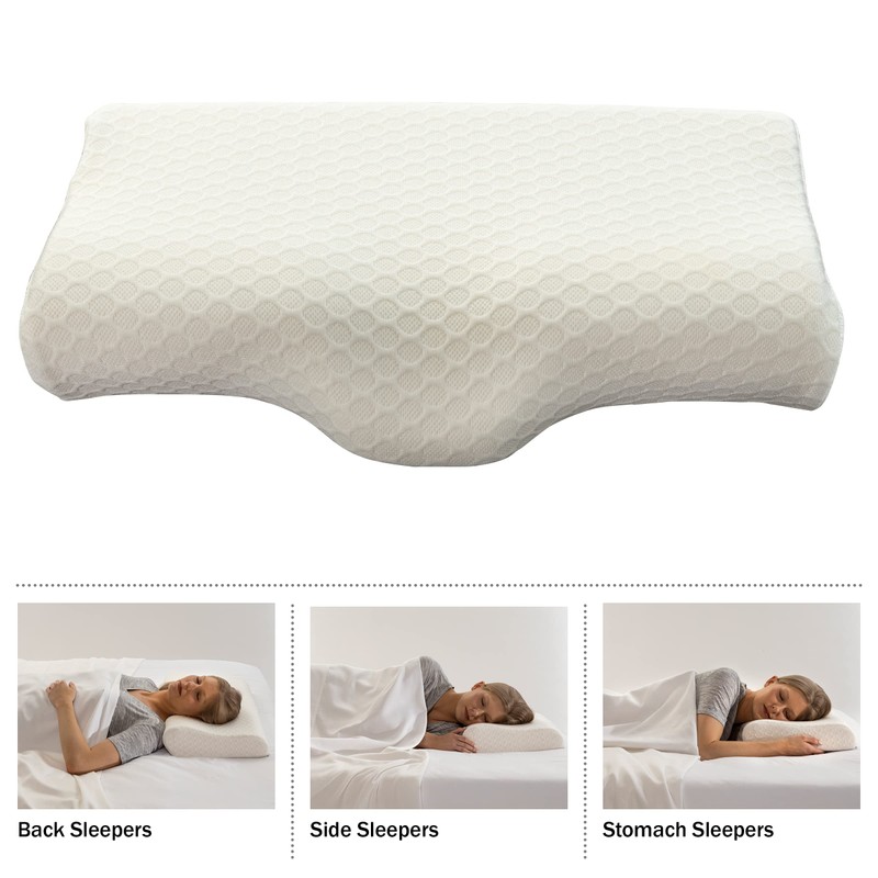- NECK PILLOW - Support your neck and sleep comfortably in bed with this memory foam pillow. The contour pillow features a dip intended to help keep your head from rolling around at night, reducing neck and shoulder pain.