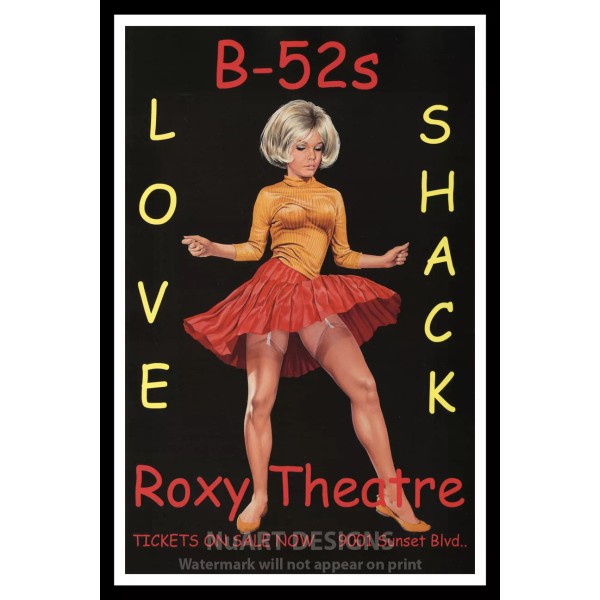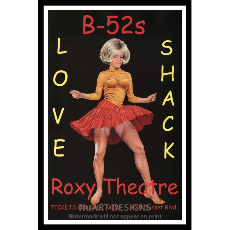 Home Decor Framed Vintage Style Rock n Roll Poster "B-52s - LOVE SHACK"; 12x18