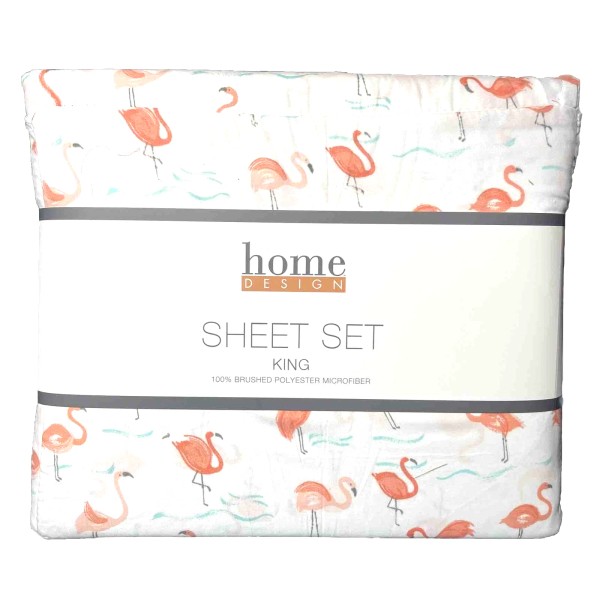 Home Design Flamingo Brushed Microfiber 4 Piece Sheet Set King $45