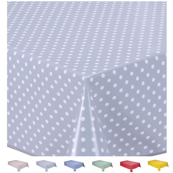 Home Direct Rectangular Oilcloth PVC Wipe Clean Tablecloth 140cm x 180cm 55x70 Small Polka Dot Light Grey