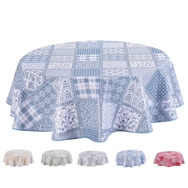 Home Direct Round Oilcloth PVC Wipe Clean Tablecloth Table Cover 140cm 55" Blue Grey