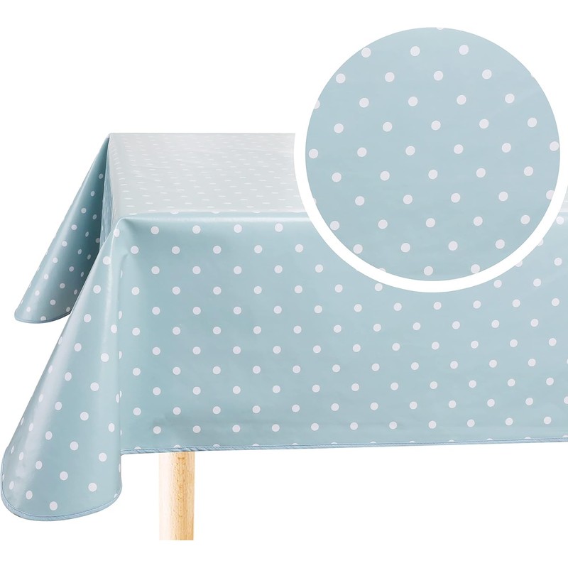 Home Direct Wipe Tablecloth Oilcloth PVC Tablecloth Cover Small Polka Dot 100cm x 140cm Duck Egg Blue