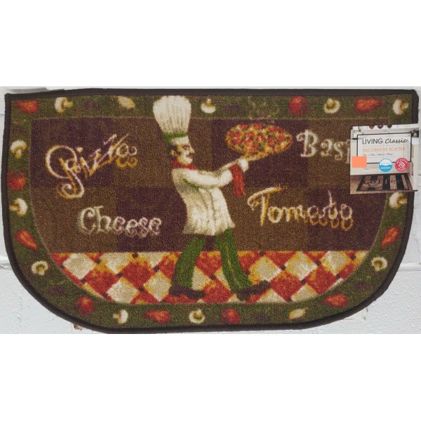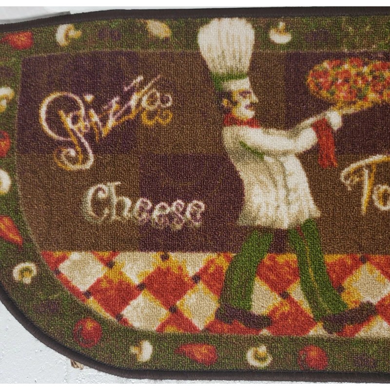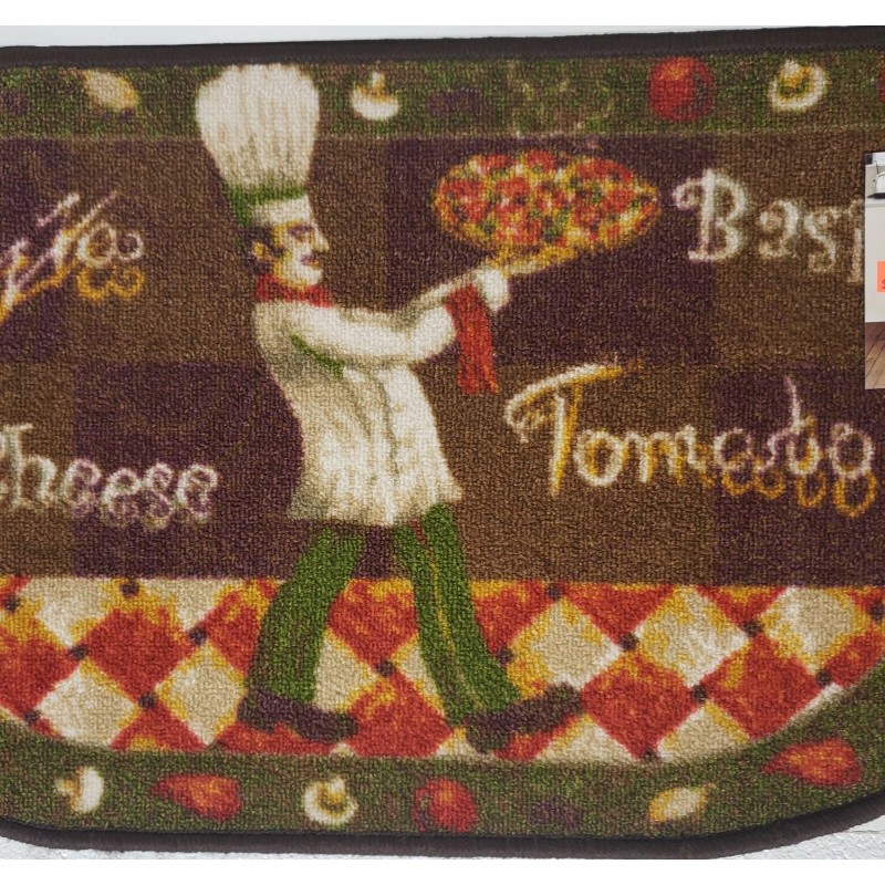 I'm selling a PRINTED KITCHEN NYLON RUG (non skid latex back) (18" x 30") FAT CHEF WITH PIZZA, darker green, in D Shaped as shown on the pictures. This rug is in dark greenish color and I may have the same rug in brownish color. Made by Home Dynamix in Egypt. Machine Wash cold. It's brand new, with tags. Please check out my other listings to see more of FAT CHEF themed items and some other stuff, and if you buy multiple items, please contact me and I will find out how I can combine your shipping. I ship to USA only (or internationally using Global Shipping). |