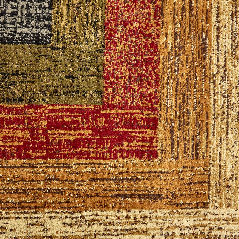 - MID-CENTURY MODERN INSPIRED STYLE: The layered rectangle design is true to the mid-century modern style with earth tone hues of black, brown and crimson red. The Royalty Vega collection will easily complement your existing home décor..Construction type:Machine Made