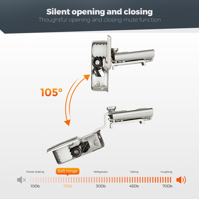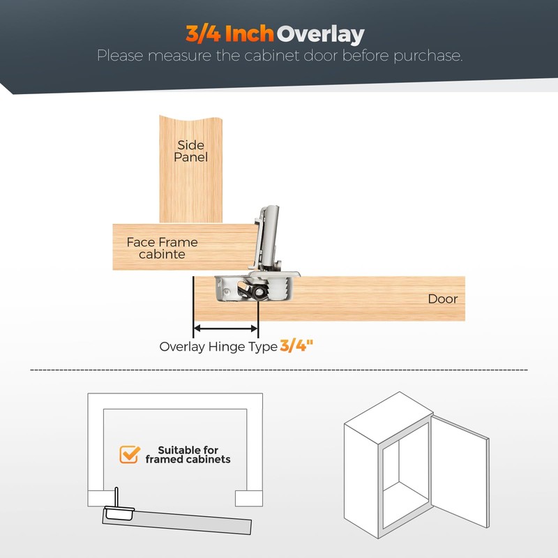 - Soft Close Cabinet Hinge: Each Overlay Concealed Cabinet Hinge Features a Built-in POM Damper, Reducing Closing Speed to Minimize Noise and Extend the Lifespan of Doors, Cabinets, and Hinges