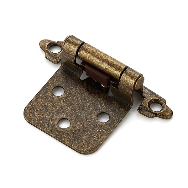 Home Expert 50 Pack (25 Pairs) Antique Brass Cabinet Hinges for Kitchen Doors, Self-Closing, 1/2 Inch Overlay (Variable), Semi-Concealed Face Frame, Surface Mount Cabinet Hardware