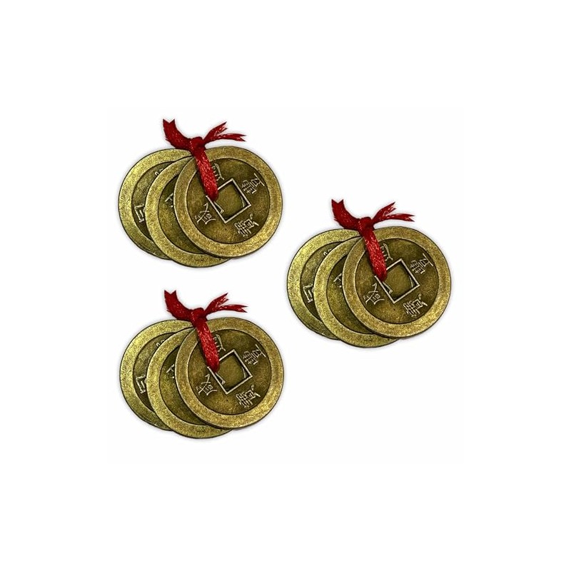 Home Genie Feng Shui Chinese Coins with Red String | Vastu Symbol for Harmony & Prosperity | Home & Office Décor Pack of 3