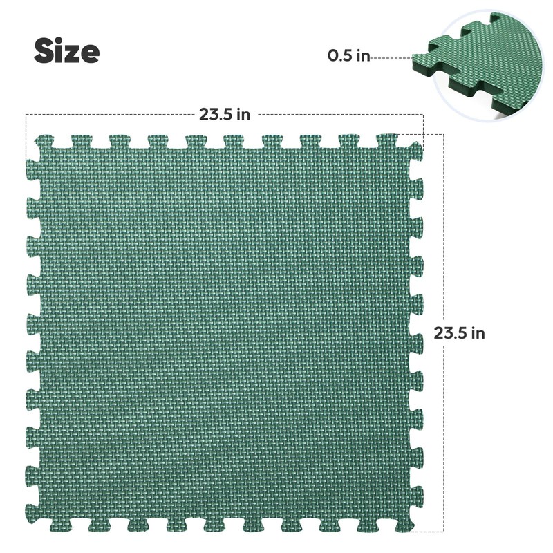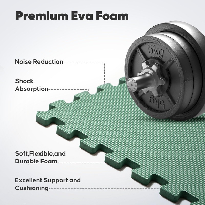 Home Gym Mat, Puzzle Exercise Mat, EVA Interlocking Foam Floor Tiles for Home Workout Equipment and Kids' Play Areas - Green, 24 in x 24 in x ½ in - 24 Tiles (Green, 24 Pack, 96 SQ FT)