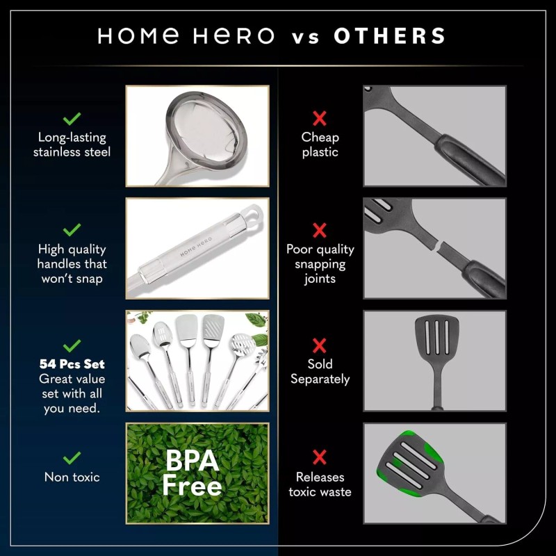 Home Hero 54-Piece Stainless Steel Kitchen Utensils Set-Nonstick, Heat-Resistant