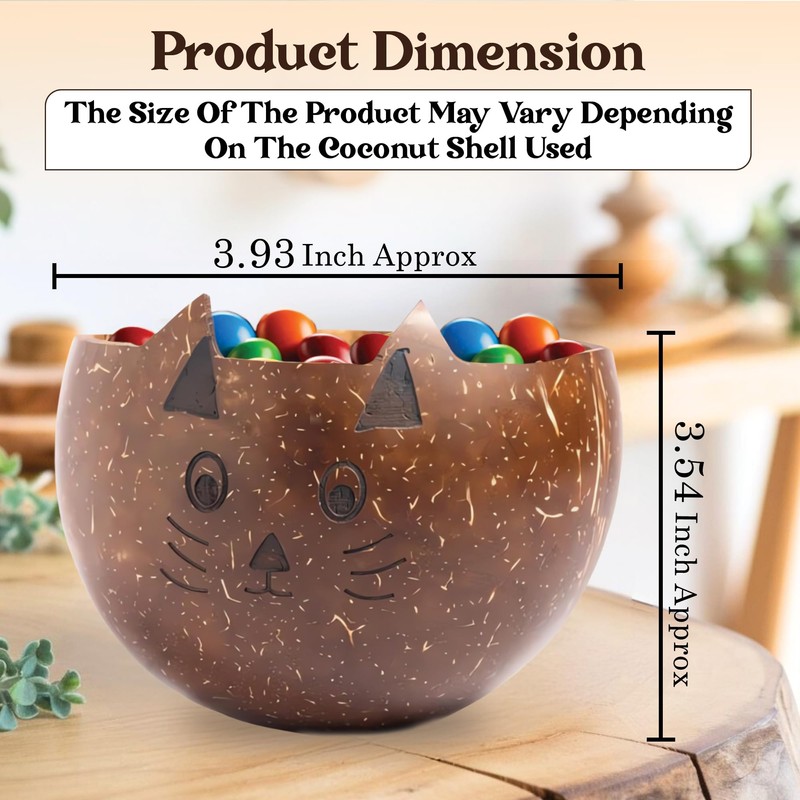 HOME INFINIX Handmade Coconut Shell Bowl โ Eco-Friendly & Cute Cat-Shaped Bowl for Toddlers & Kids โ Sustainable, BPA-Free Cereal Bowl, Serving Bowls for Fruits, Snack, Smoothies, Salad & Soup