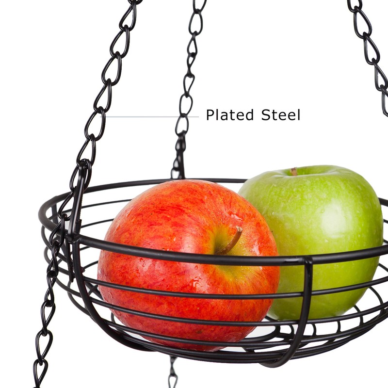 The Home Intuition three tiered hanging basket, sturdy iron wire is ideal for storing fruits, vegetables, food goods, and other kitchen items. The extra storage maximizes kitchen area and prevents counter top clutter.