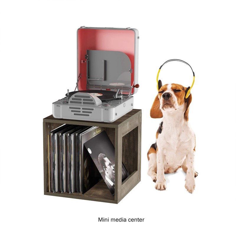 - PRODUCT DETAILS- Materials: MDF Wood and Wood Grain Veneer. Dimensions: 15.75” L x 15.75” W x 15.75” H. Weight Capacity: 22 Lbs. Per Shelf. Color: Wood Grain Gray. Includes Assembly Hardware.