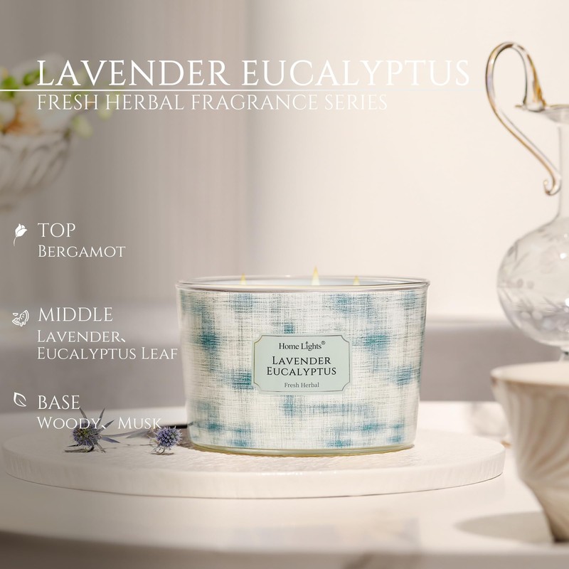 Home Lights Soy Wax Candles for Home Scented in Glass, 4-Wick Candles, Aromatherapy Candles Gift for Parties, Over 50 Hours Burning Time, 18 oz Lavender Eucalyptus